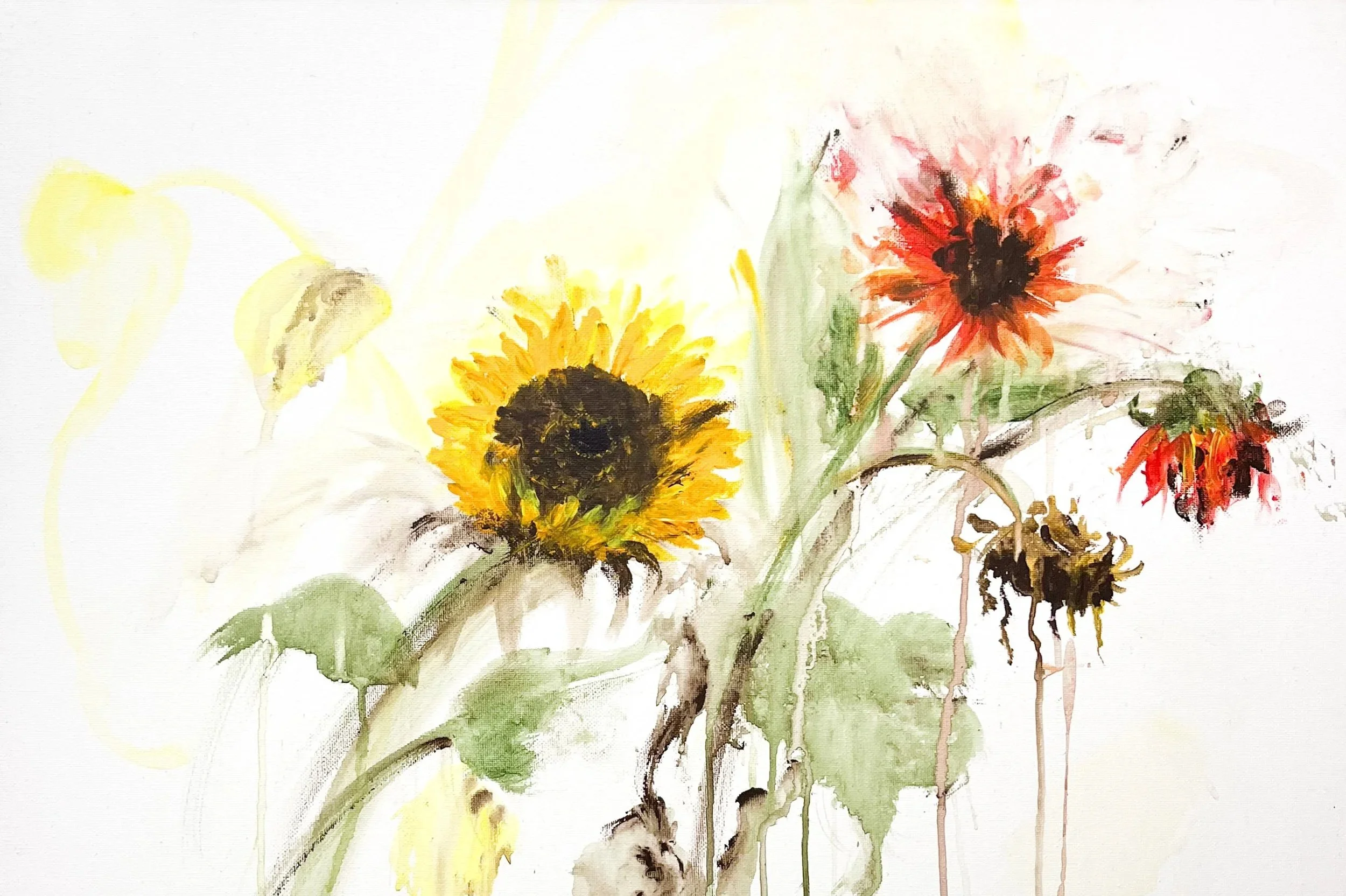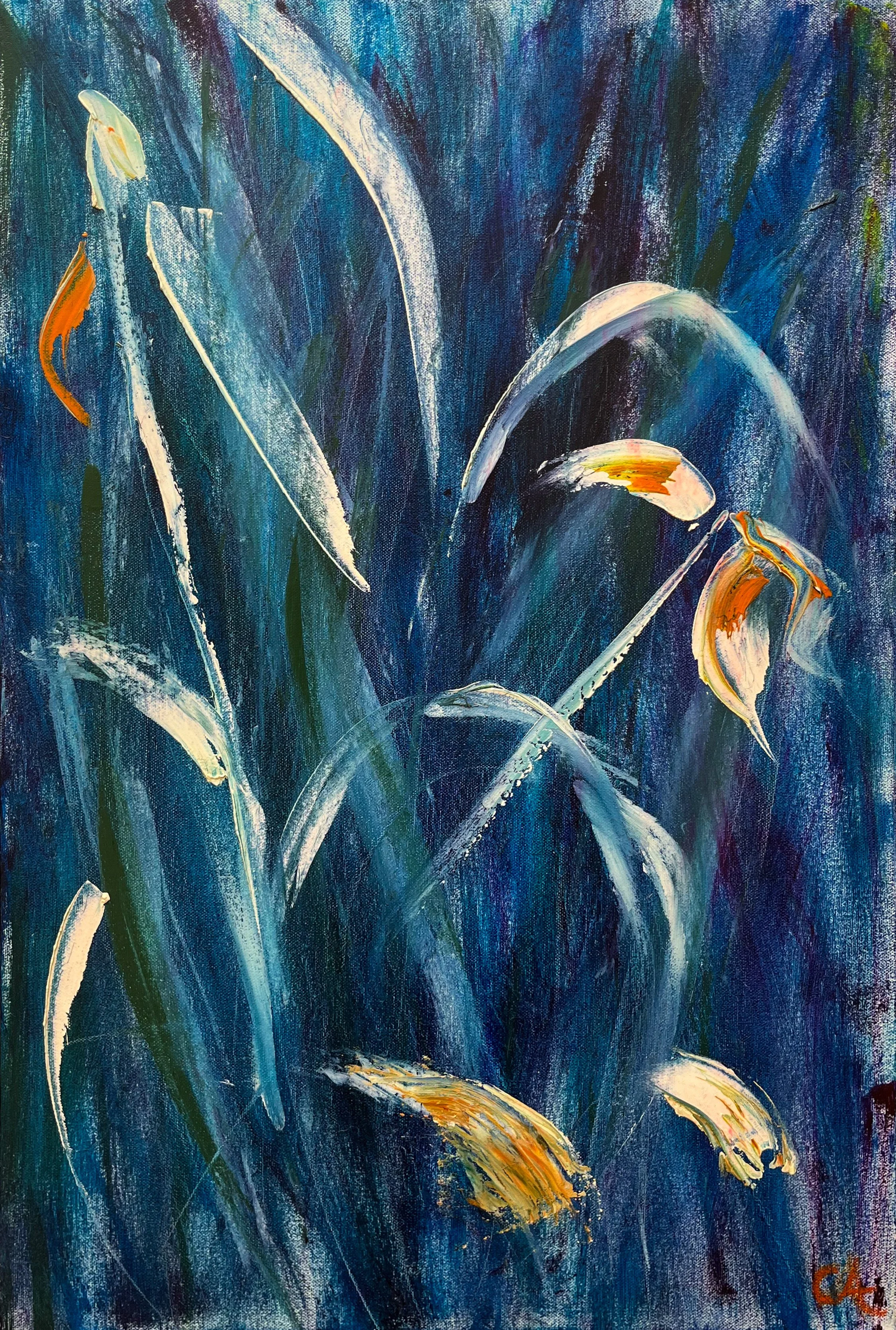 Cath learned to paint on her dad’s easel after many years of studying colour, shape, and form through everyday activities such as dressmaking and cooking.